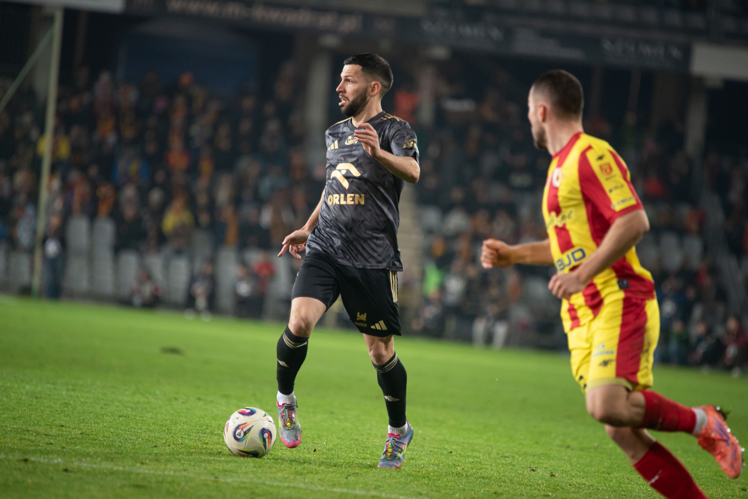 Kilka minut po zmianie stron nieporozumienie naszych obrońców mógł wykorzystać Svetlin, który wyszedł sam na sam z Leszczyńskim, ale jeszcze raz górą w tym spotkaniu okazał się nasz bramkarz! Później ze stojącej piłki nieudanie mierzył Wiktor Długosz, a po drugiej stronie indywidualnej akcji i strzału spróbował Dani Pacheco, któremu zabrakło mu trochę precyzji. Chwilę potem z lewej strony dośrodkował Quentin Lecoeuche i piłkę na klatkę piersiową przyjął Sekulski, a następnie mocno uderzył z woleja – tym razem na posterunku był Dziekoński. W 64. minucie Wiktor Nowak dobił odbite przez bramkarza zagranie z rzutu wolnego Daniego Pacheco, ale minimalnie spalił akcję i po kilkuminutowej analizie VAR gol został anulowany. W kolejnych minutach Korona długimi fragmentami utrzymywała się na naszej połowie, ale niewiele z tego wynikało. Aż do 84. minuty, gdy z prawej strony do środka zszedł rezerwowy Nono i zdecydował się na strzał. Tor lotu piłki zmienił jeszcze Konstantinos Soteriou i kielczanie doprowadzili do wyrównania. Chwilę wcześniej gospodarze mieli rzut rożny, po którym nieudanie głowę do futbolówki przyłożył właśnie Grek i wyszliśmy z kontrą zakończoną niecelnym uderzeniem Nowaka. Grający dziś jako drugi napastnik 21-latek miał później jeszcze jedną podobną okazję, ale i tym razem zabrakło mu dokładności. Podobnie jak pod drugą bramką dwukrotnie Antoninowi, który najpierw nie zdołał utrzymać się na nogach, a następnie nie trafił między słupki. W doliczonym czasie z pierwszej piłki na linii szesnastki uderzył jeszcze Konrad Ciszek, ale zdecydowanie się pomylił i mecz zakończył się remisem.
